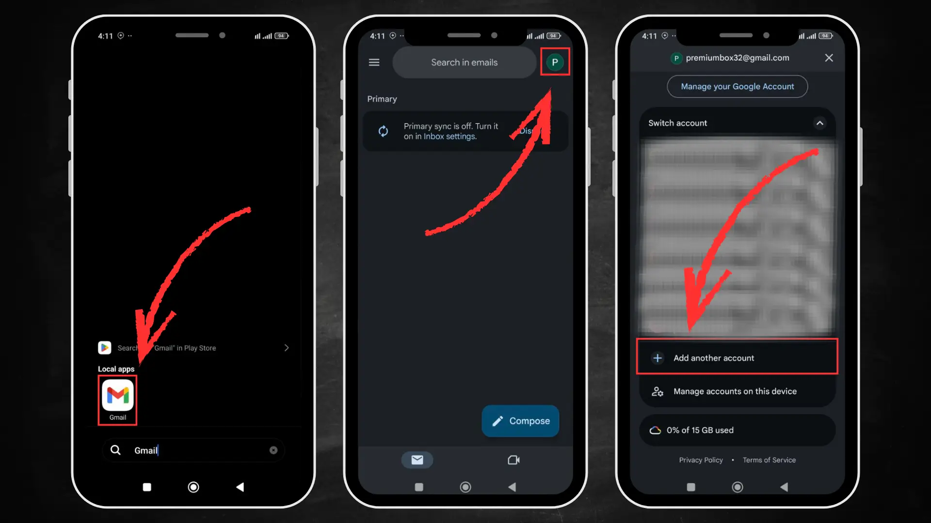 موفقیتآمیزترین روش برای عبور از مرحله تأیید شماره تلفن، استفاده از برنامه Gmail بر روی گوشیهای هوشمند اندروید یا iOS است. الگوریتم گوگل معمولاً به فرآیندی که از طریق یک دستگاه معتبر و شخصی آغاز میشود، اعتماد بیشتری دارد و در نتیجه، گزینه رد کردن این مرحله را در اختیار کاربر قرار میدهد. برای شروع، ابتدا برنامه Gmail را در گوشی خود پیدا کرده و آن را باز کنید. همانطور که در تصاویر راهنما نشان داده شده است، در گوشه بالا سمت راست صفحه، روی آیکون پروفایل خود ضربه بزنید. از منوی باز شده، گزینه «Add another account» (افزودن یک حساب دیگر) را انتخاب کنید تا فرآیند ایجاد یک حساب جدید آغاز شود.