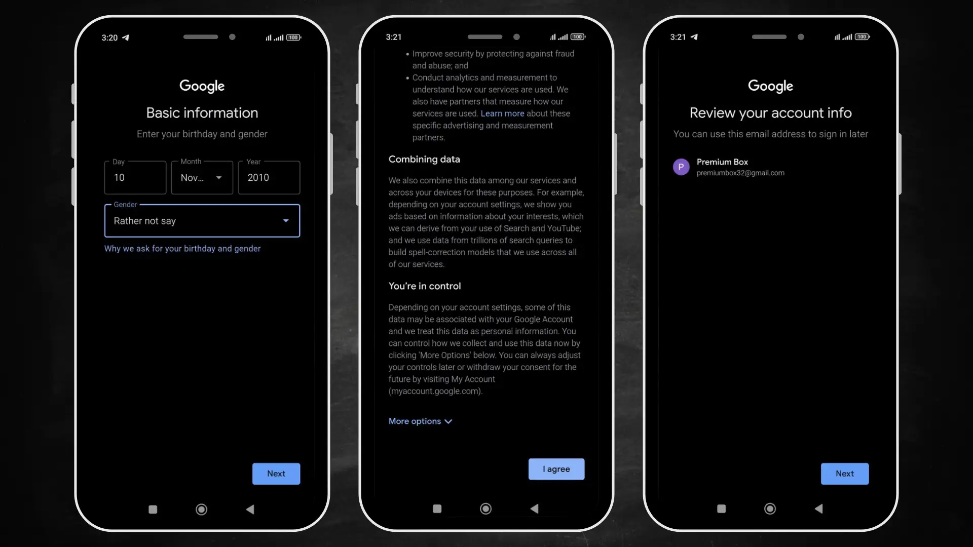 برخی کاربران گزارش دادهاند که با وارد کردن سال تولدی که سن آنها را کمتر از ۱۵ سال نشان دهد، گوگل با فرض اینکه کاربر ممکن است سیمکارت شخصی نداشته باشد، مرحله درخواست شماره تلفن را به کلی حذف کرده یا آن را اختیاری میکند.
