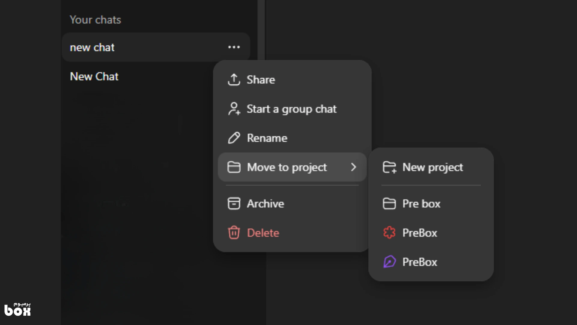 - برای هر چت، گزینه «Add to Project» را انتخاب کنید.